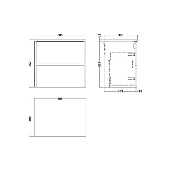 Nuie Havana 600mm Wall Hung 2-Drawer Unit & Worktop