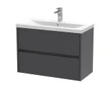 Nuie Havana Wall Hung 810mm Graphite Grey Woodgrain 2 Drawer Vanity Unit with Basin