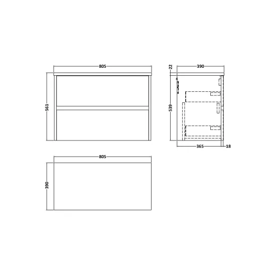 Nuie Havana 800mm Wall Hung 2 Drawer Unit with Laminate Worktop