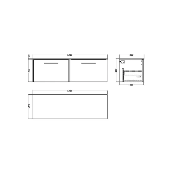 Hudson Reed Juno 1200mm Coastal Grey Wall Hung 2-Drawer Vanity Unit With Worktop
