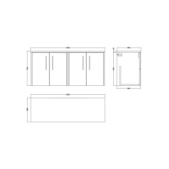 Hudson Reed Juno 1200mm Wall Hung 4-Door Vanity & Laminate Worktop - Midnight Blue