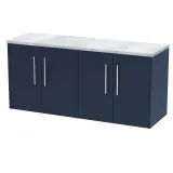 Hudson Reed Juno 1200mm Wall Hung 4-Door Vanity & Laminate Worktop - Midnight Blue