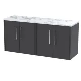 Hudson Reed Juno 1200mm Wall Hung 4-Door Vanity & Laminate Worktop - Graphite Grey Woodgrain