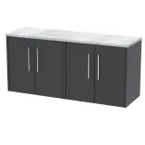 Hudson Reed Juno 1200mm Wall Hung 4-Door Vanity & Laminate Worktop - Graphite Grey Woodgrain