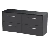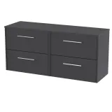 Hudson Reed Juno 1200mm Graphite Grey Woodgrain Wall Hung 4-Drawer Vanity Unit With Laminate Worktop & Handles