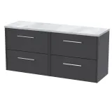 Hudson Reed Juno 1200mm Wall Hung 4-Drawer Vanity & Laminate Worktop - Graphite Grey Woodgrain