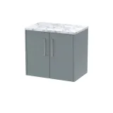 Hudson Reed Juno 600mm Wall Hung 2-Door Vanity & Laminate Worktop - Graphite Grey Woodgrain
