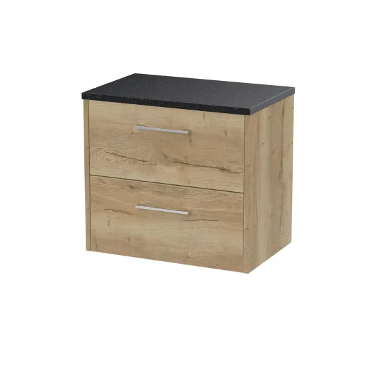 Hudson Reed Juno 600mm Autumn Oak Wall Hung 2-Drawer Vanity Unit With Laminate Top