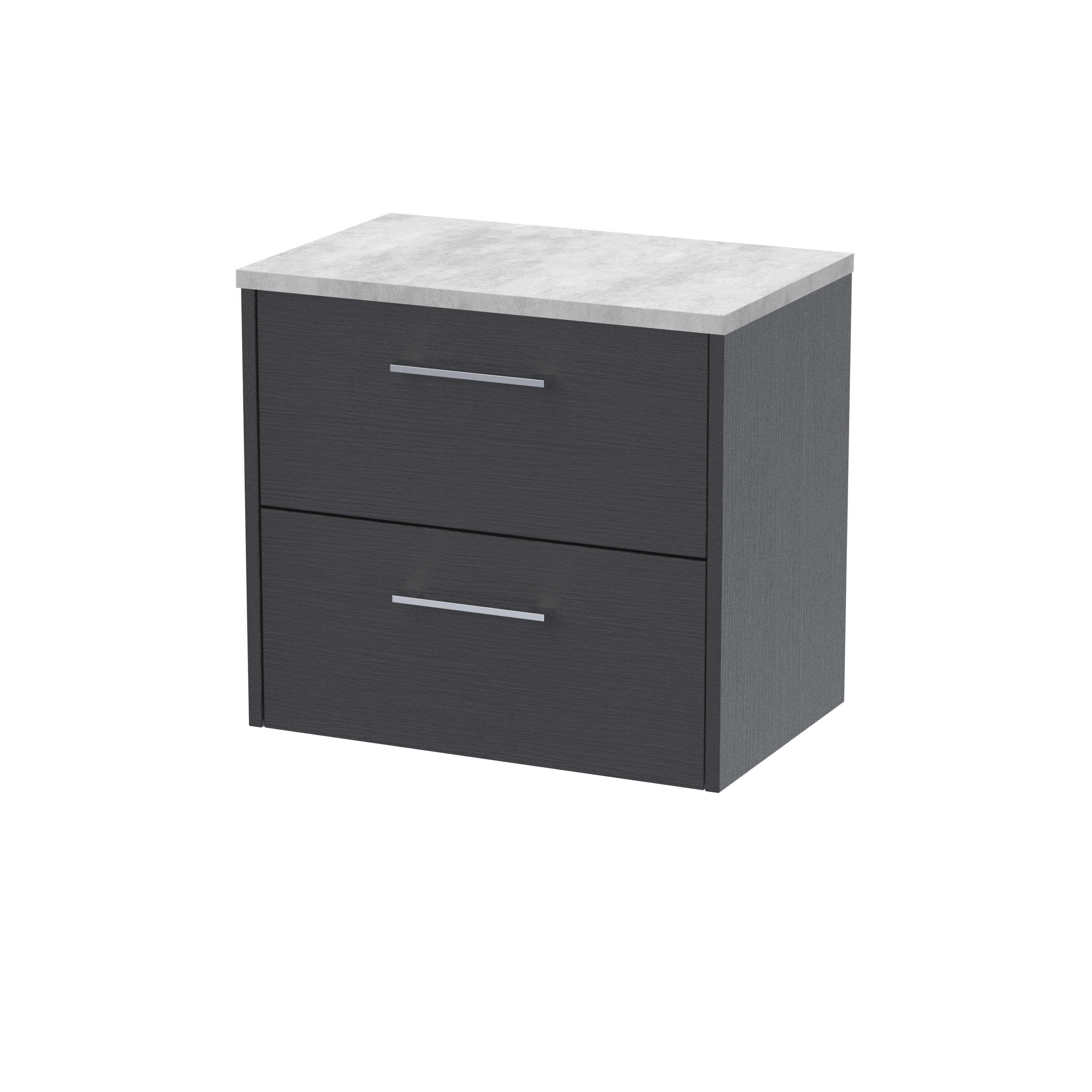 Hudson Reed Juno 600mm Graphite Grey Woodgrain Wall Hung 2-Drawer Vanity Unit With Laminate Top