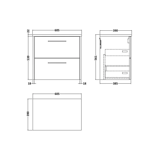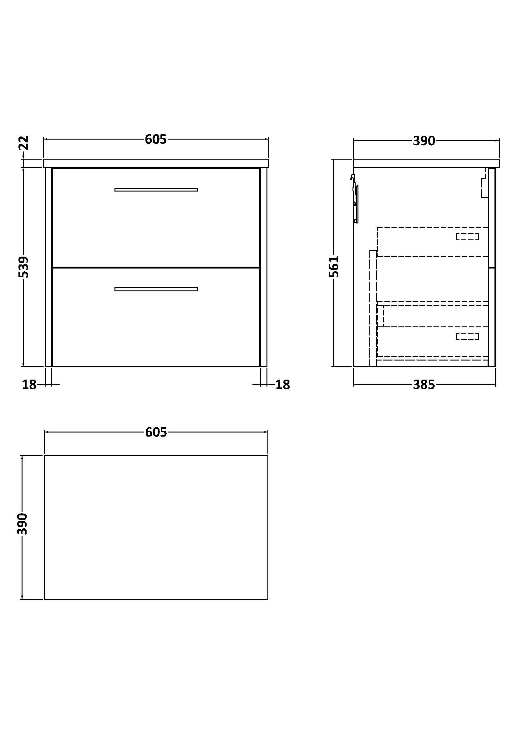 Hudson Reed Juno 600mm Wall Hung 2-Drawer Vanity & Laminate Top - Graphite Grey