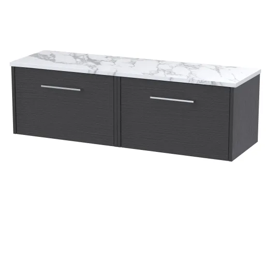 Hudson Reed Juno 600mm Wall Hung Single Drawer Vanity & Laminate Worktop - Graphite Grey Woodgrain