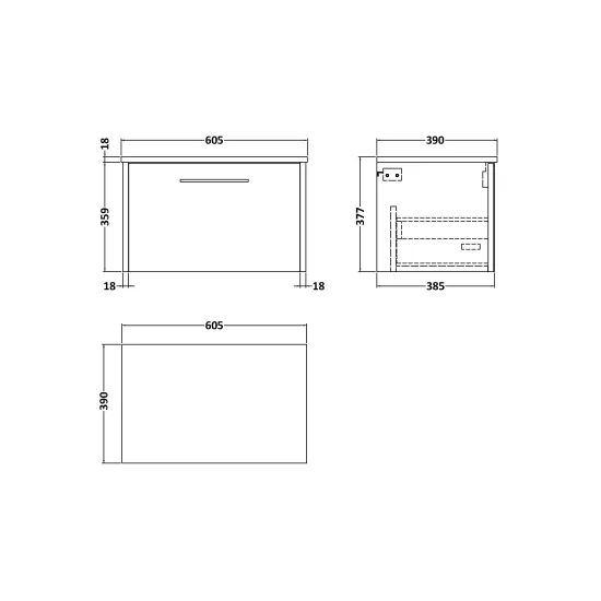 Hudson Reed Juno 600mm Wall Hung Single Drawer Vanity Unit With Worktop & Handle