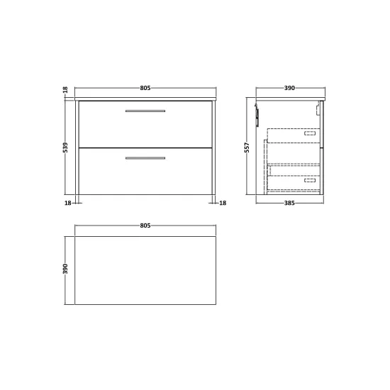 Hudson Reed Juno 800mm Wall Hung 2-Drawer Vanity Unit With Worktop