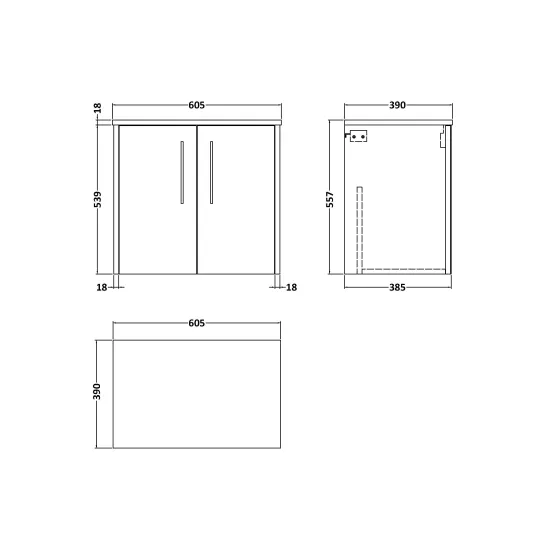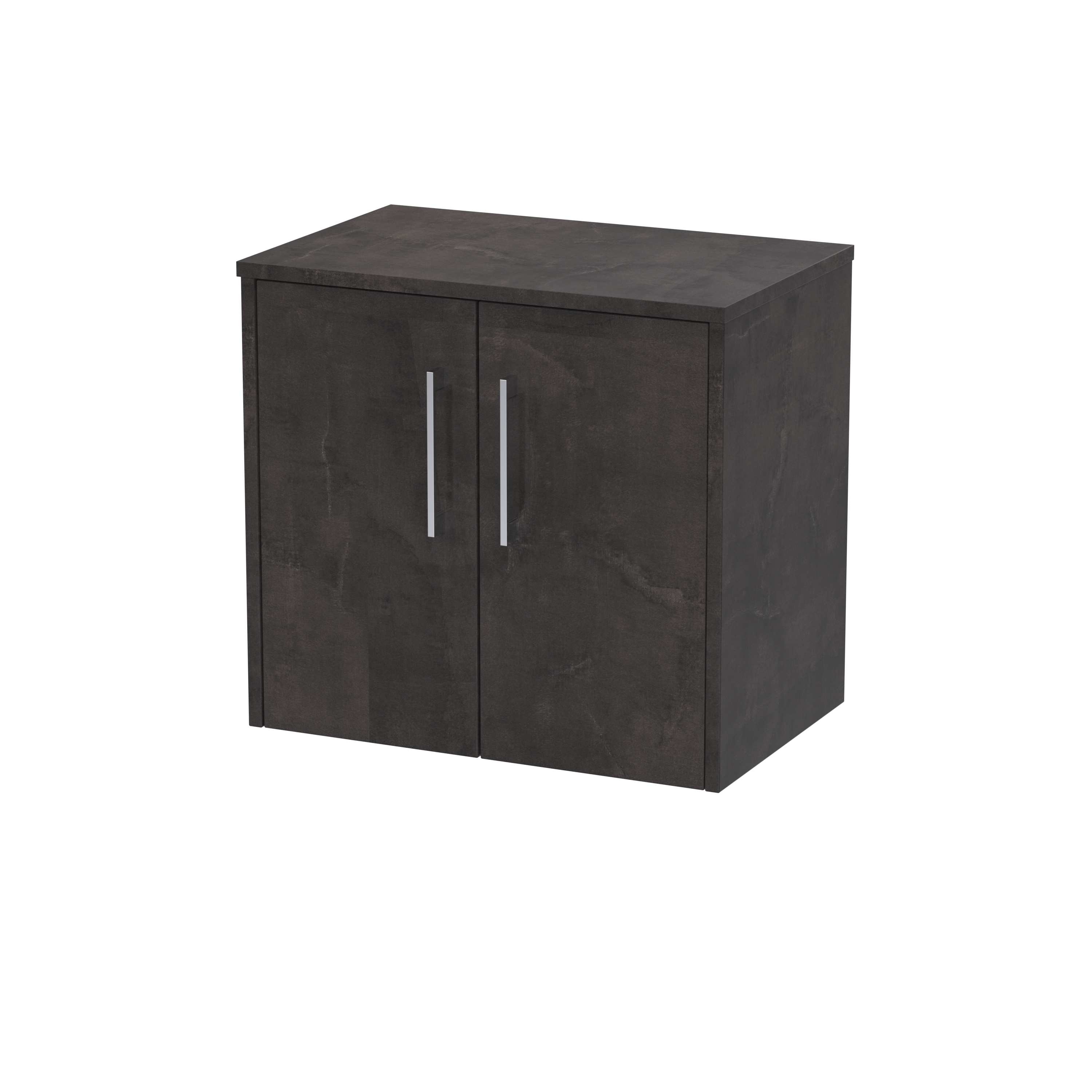 Hudson Reed Juno Wall Hung 2 Door Vanity Unit & Colour Match Worktop, 600mm - Metallic Slate