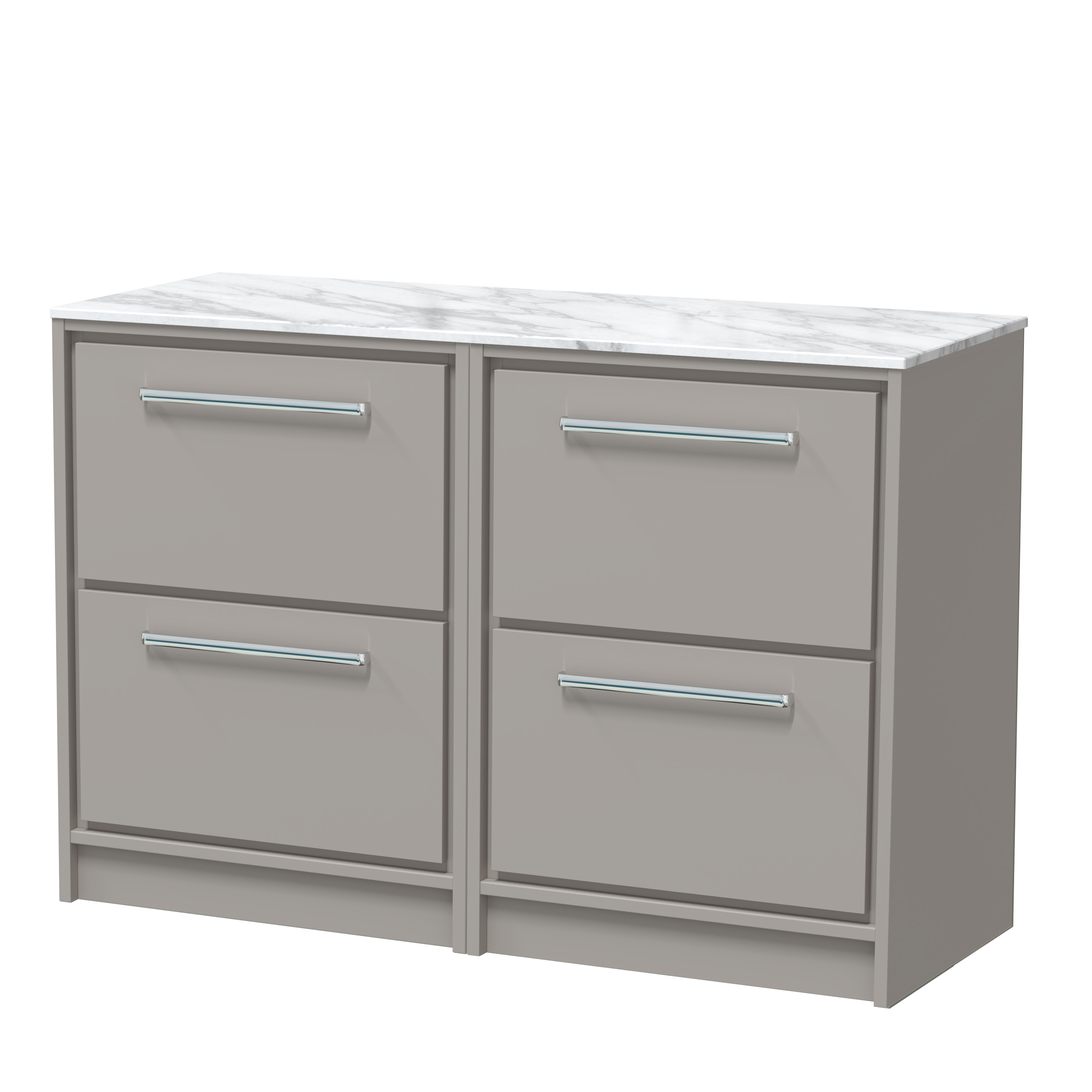 Hudson Reed Lille 1200mm Floor Standing 4-Drawer Vanity with Marble Worktop - Pebble Grey