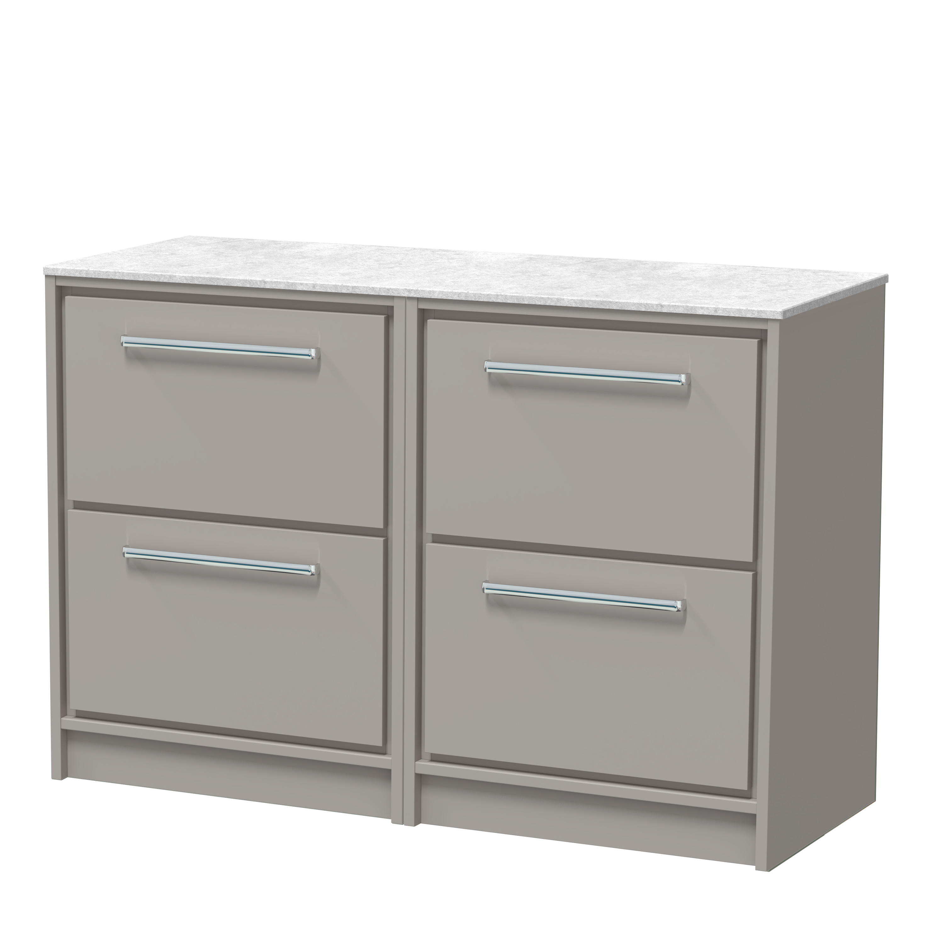 Hudson Reed Lille 1200mm Floor Standing 4-Drawer Vanity with Marble Worktop - Pebble Grey