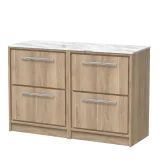 Hudson Reed Lille 1200mm Floor Standing 4-Drawer Vanity with Marble Worktop - Bleached Oak