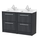 Hudson Reed Lille 1200mm Floor Standing 4-Drawer Vanity Unit with Double Marble Basin, Soft Close