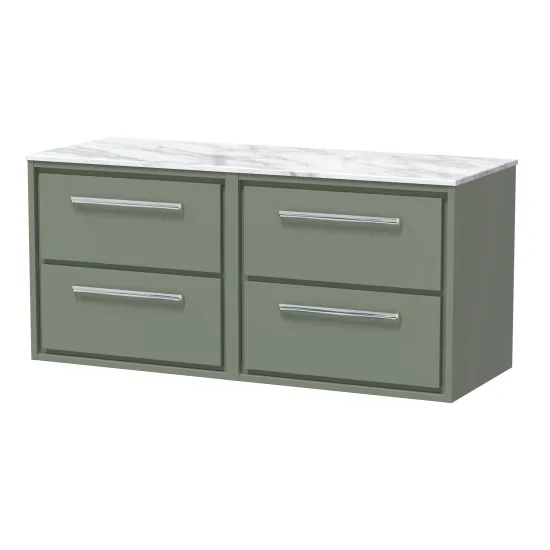 Hudson Reed Lille 1200mm Wall Hung 4-Drawer Vanity with Marble Worktop - Fern Green