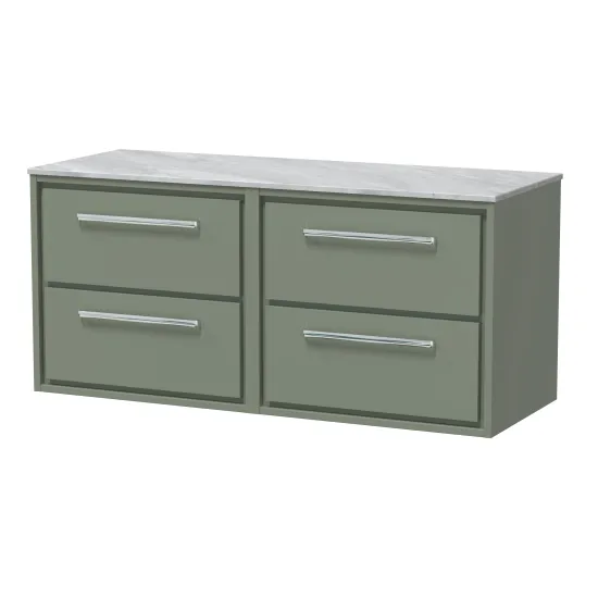 Hudson Reed Lille 1200mm Wall Hung 4-Drawer Vanity with Marble Worktop - Fern Green