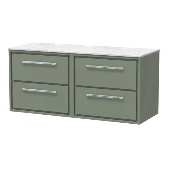 Hudson Reed Lille 1200mm Wall Hung 4-Drawer Vanity with Marble Worktop - Fern Green