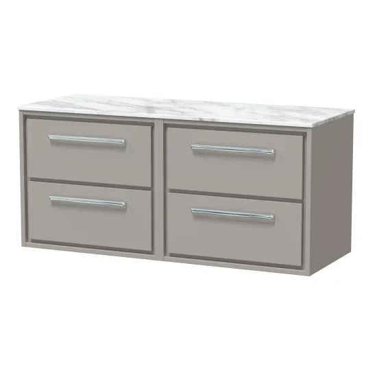 Hudson Reed Lille 1200mm Wall Hung 4-Drawer Vanity with Marble Worktop - Pebble Grey