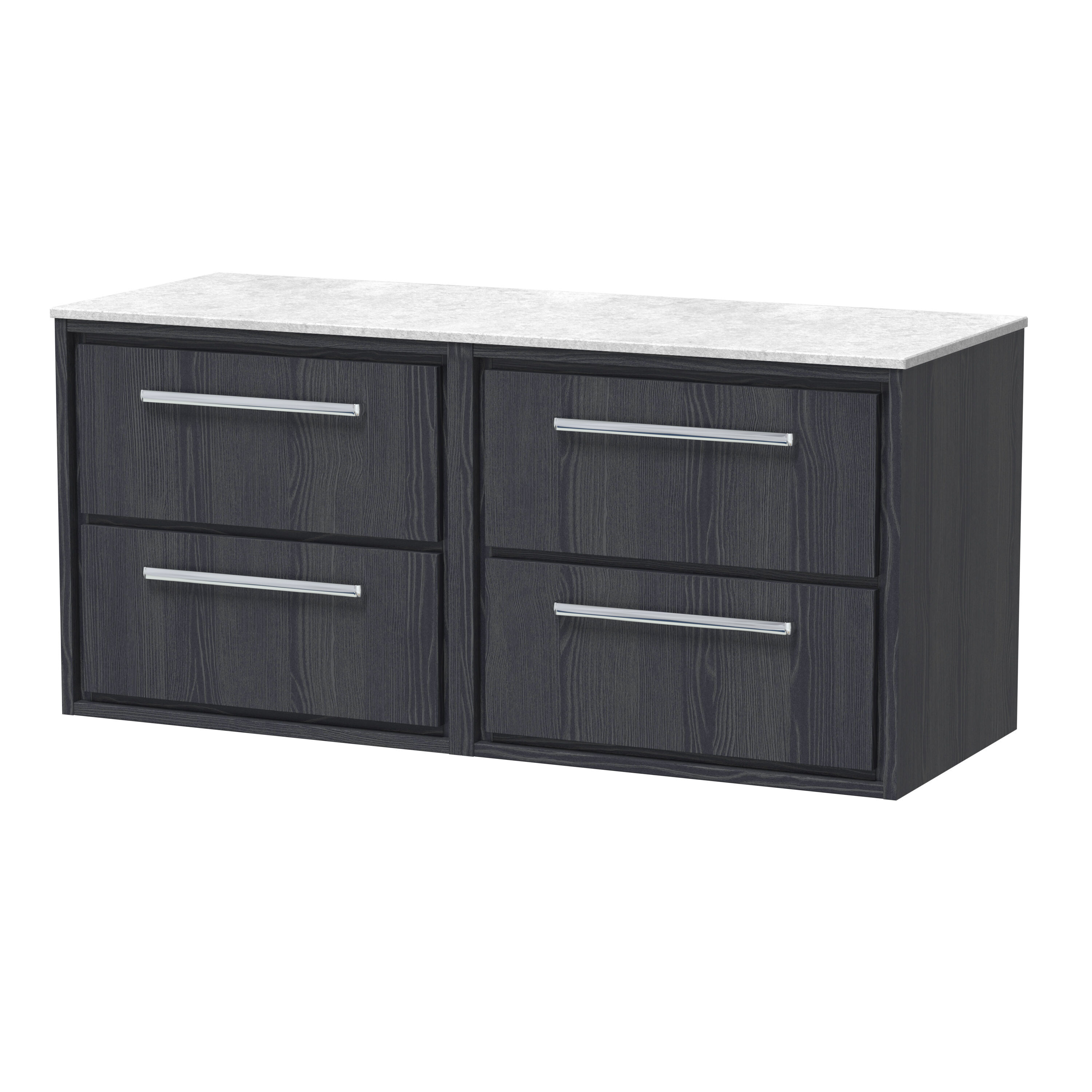 Hudson Reed Lille 1200mm Graphite Grey Woodgrain Wall Hung 4-Drawer Vanity Unit With Marble Worktop