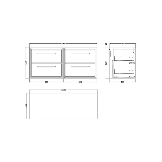 Hudson Reed Lille 1200mm Wall Hung 4-Drawer Vanity Unit With Worktop