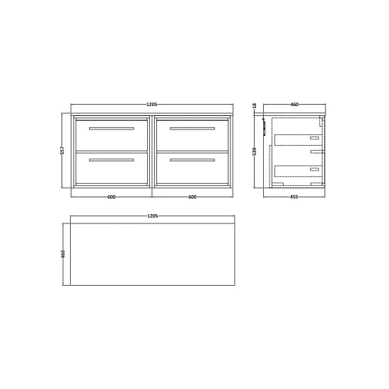 Lille 1200mm Wall Hung 4-Drawer Vanity with Worktop