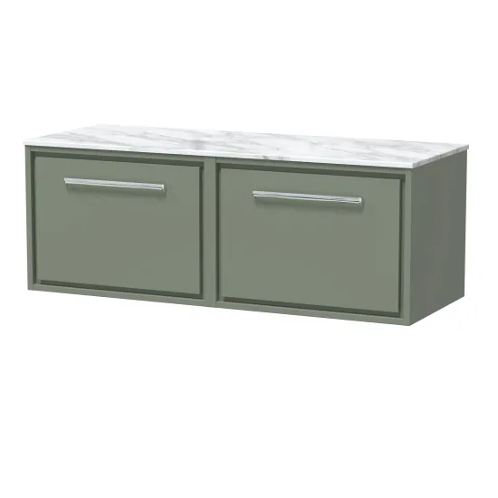 Hudson Reed Lille 1200mm Wall Hung Single Drawer Vanity with Marble Worktop - Fern Green