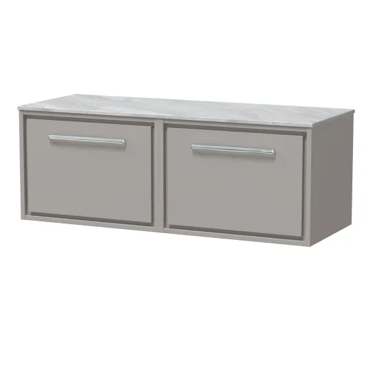 Hudson Reed Lille 1200mm Wall Hung Single Drawer Vanity with Marble Worktop - Pebble Grey