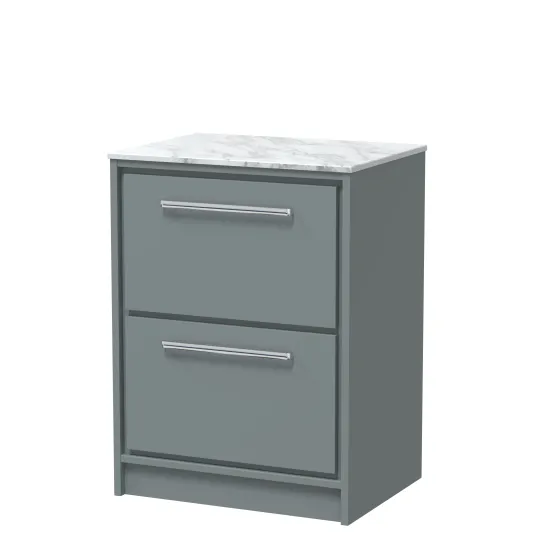 Hudson Reed Lille 600mm Floor Standing 2-Drawer Vanity with Marble Worktop - Coastal Grey