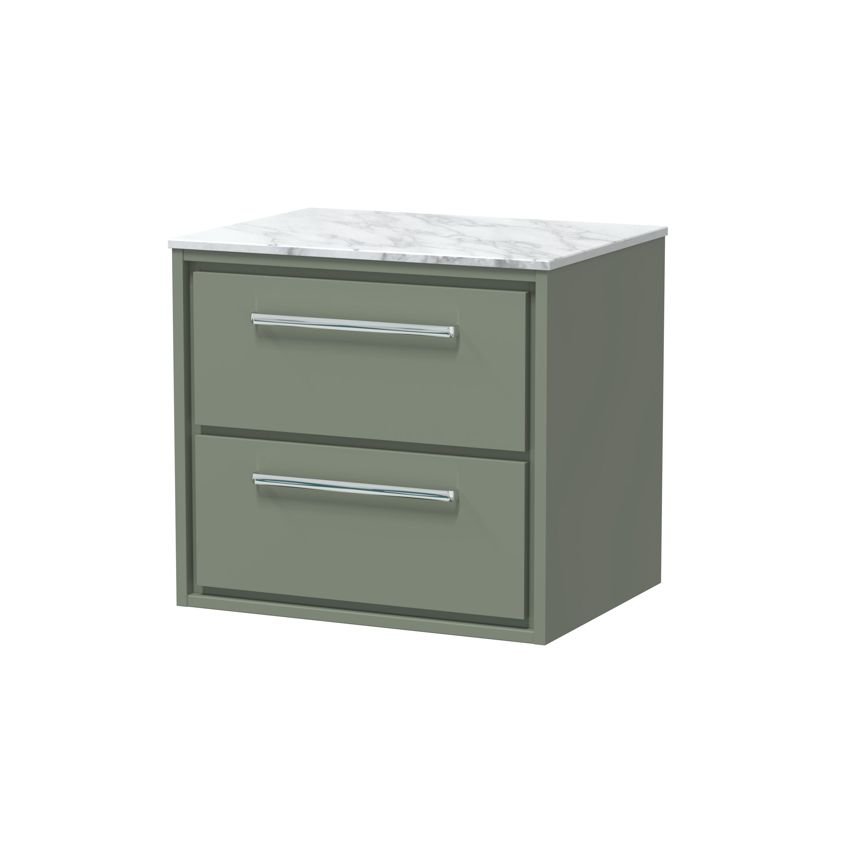 Hudson Reed Lille 600mm Wall Hung 2-Drawer Vanity with Marble Worktop - Fern Green