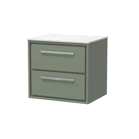 Hudson Reed Lille 600mm Wall Hung 2-Drawer Vanity with Marble Worktop - Fern Green