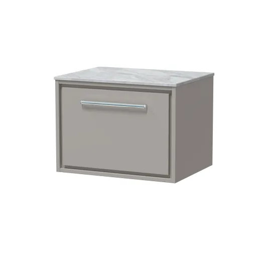 Hudson Reed Lille 600mm Wall Hung Single Drawer Vanity with Marble Worktop - Pebble Grey