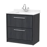 Hudson Reed Lille 800mm Graphite Grey Woodgrain Floor 2-Drawer Vanity With Marble Underslung Basin