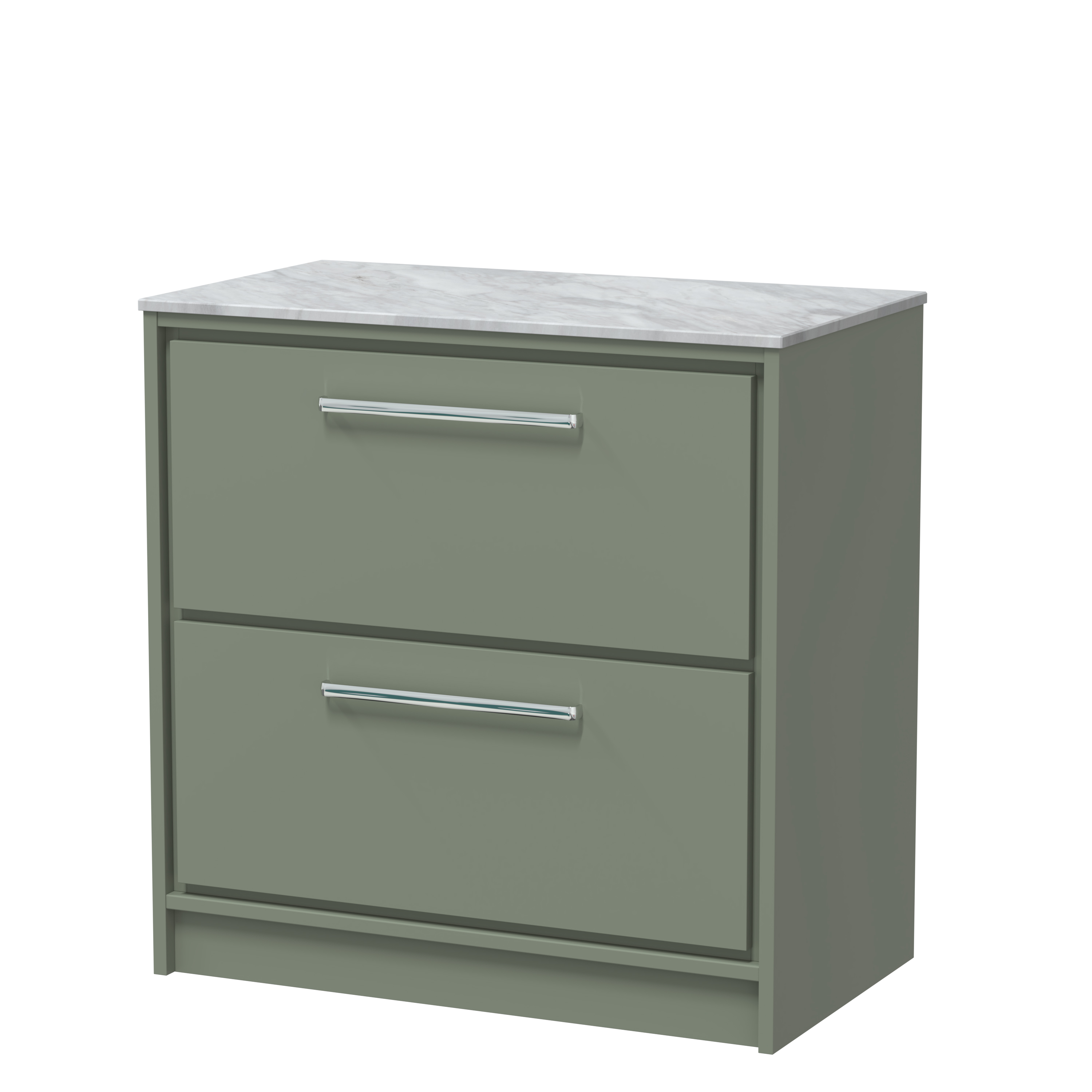 Hudson Reed Lille 800mm Floor Standing 2-Drawer Vanity with Marble Worktop - Fern Green