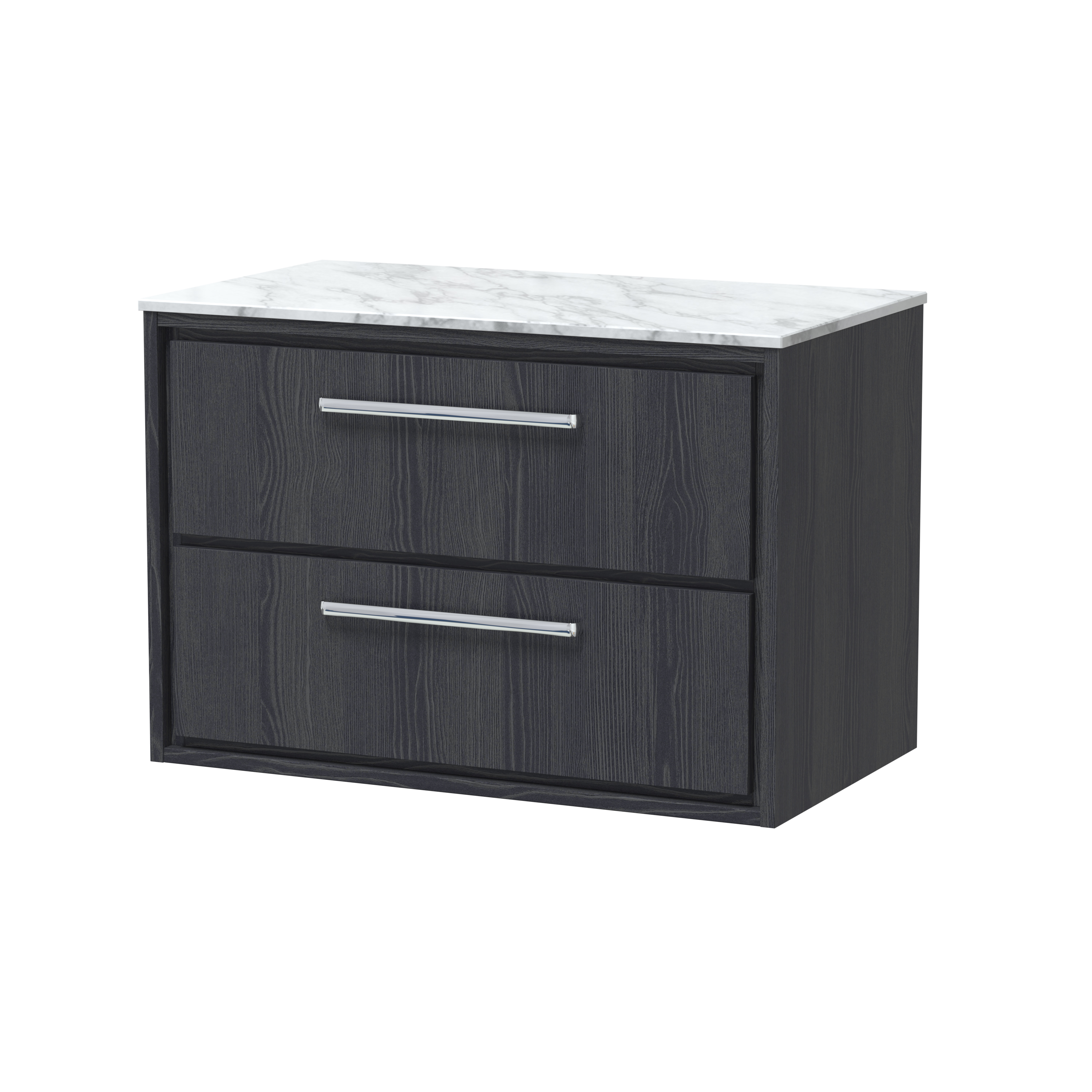 Hudson Reed Lille 810mm Graphite Grey Woodgrain Wall Hung 2-Drawer Vanity Unit With Marble Worktop