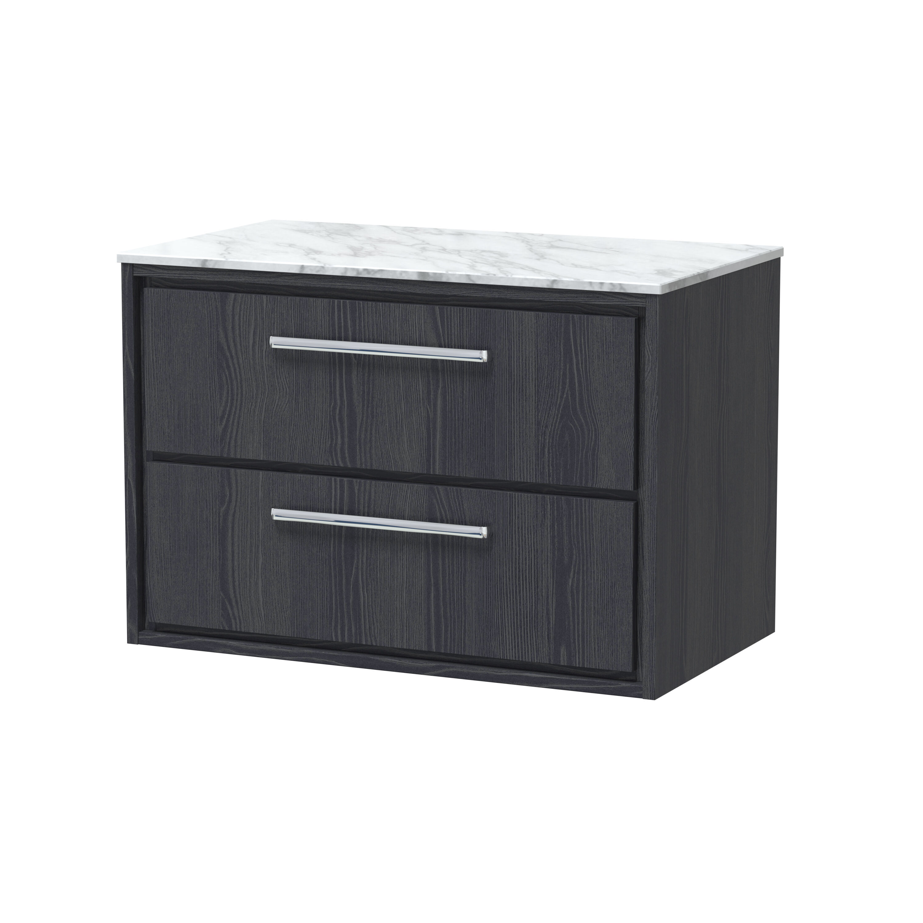 Hudson Reed Lille 800mm Graphite Grey Woodgrain Wall Hung 2-Drawer Vanity with Marble Worktop and Soft-Close Drawers