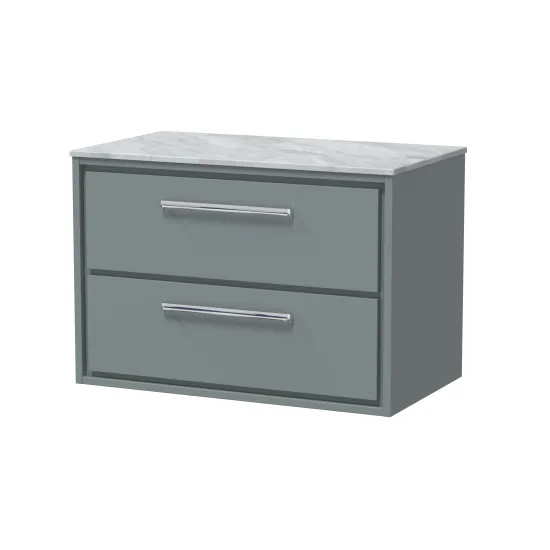 Hudson Reed Lille 800mm Wall Hung 2-Drawer Vanity with Marble Worktop - Coastal Grey