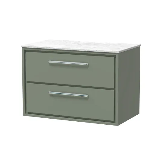 Hudson Reed Lille 800mm Wall Hung 2-Drawer Vanity with Marble Worktop - Fern Green