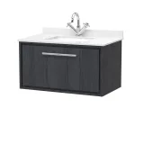 Hudson Reed Lille 800mm Graphite Grey Woodgrain Wall Hung Single Drawer Vanity with Marble Worktop