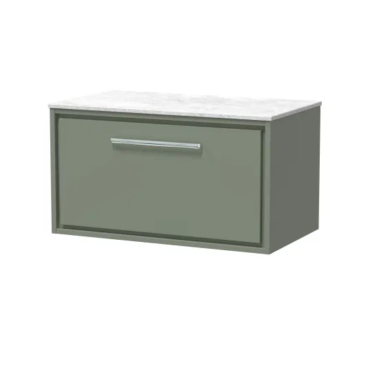 Hudson Reed Lille 800mm Wall Hung Single Drawer Vanity with Marble Worktop - Fern Green