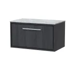 Hudson Reed Lille 800mm Graphite Grey Woodgrain Wall Hung Single Drawer Vanity with Marble Worktop