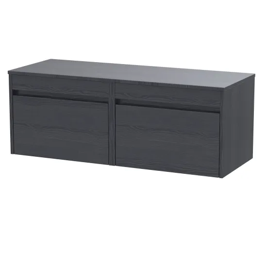 nuie Lux Loftwood 1200mm Wall Hung 2 Drawer Unit and Co-ordinating Worktop - Graphite Grey Woodgrain
