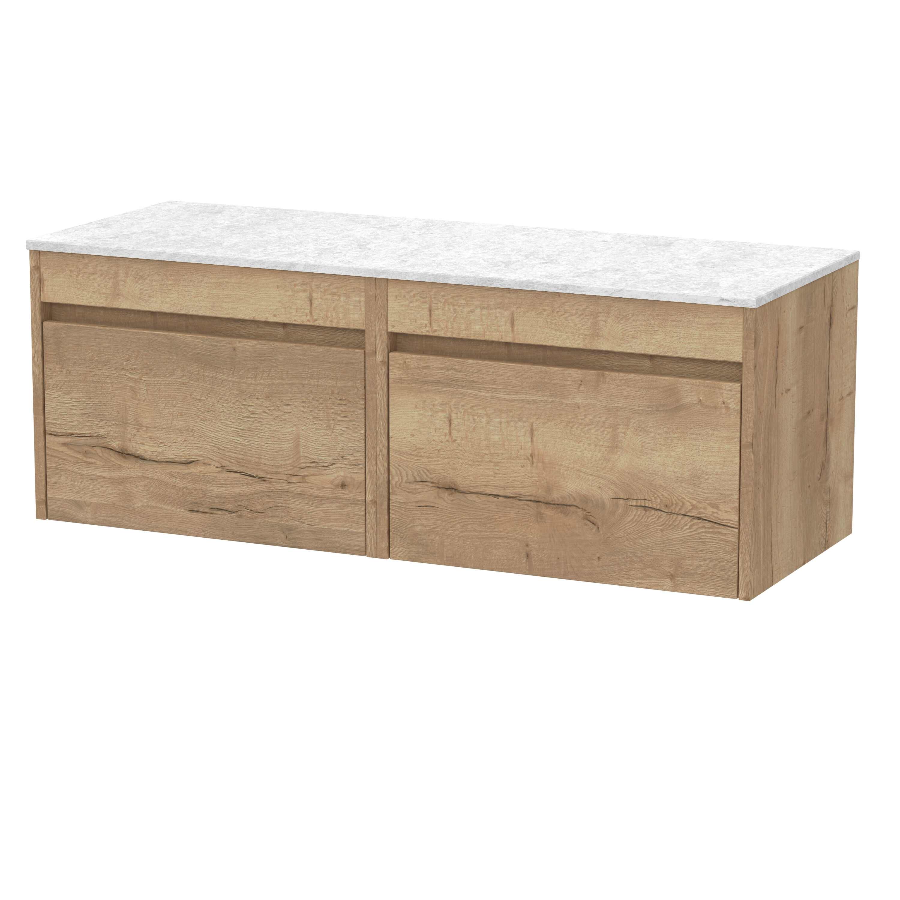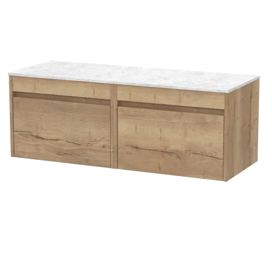 nuie Lux Loftwood 1200mm Wall Hung 2 Drawer Unit and Marble Worktop - Autumn Oak