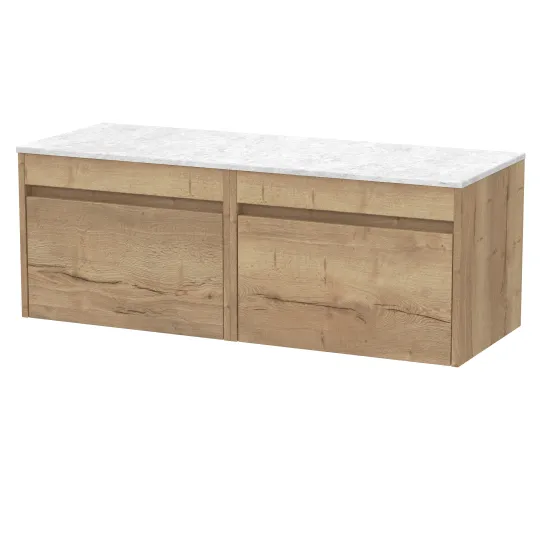 Loftwood 1200mm Wall Hung 2 Drawer Unit and Marble Worktop - Autumn Oak