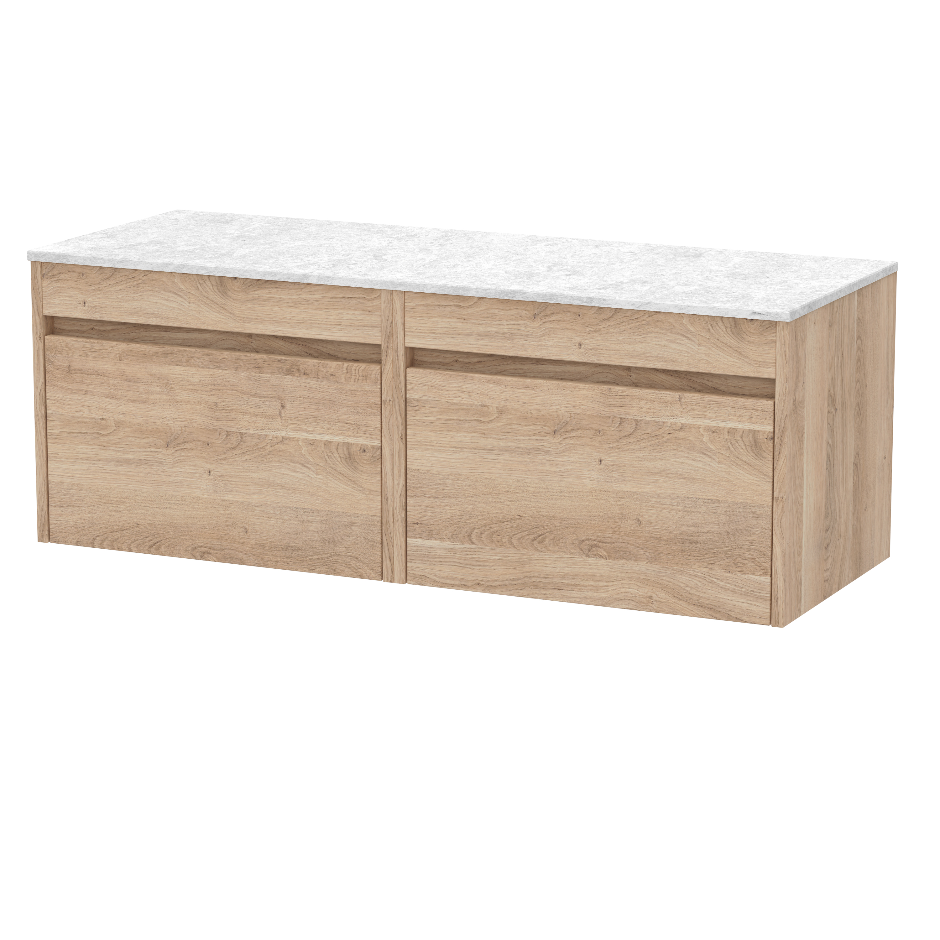 Loftwood 1200mm Wall Hung 2 Drawer Unit and Marble Worktop - Bleached Oak