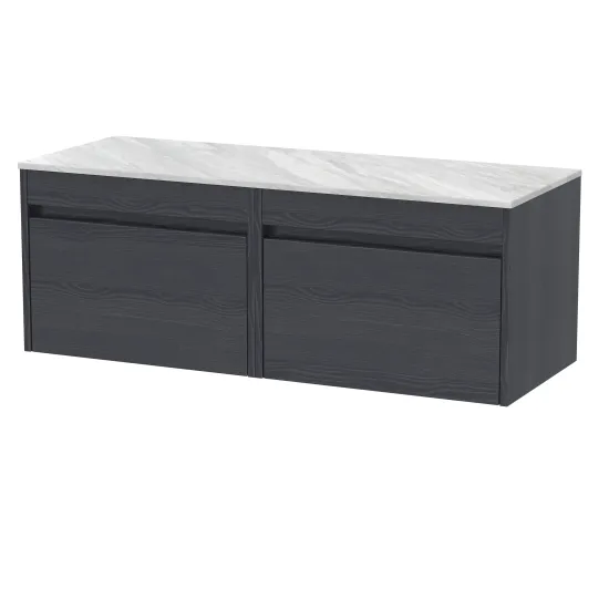 nuie Lux Loftwood 1200mm Wall Hung 2 Drawer Unit and Marble Worktop - Graphite Grey Woodgrain