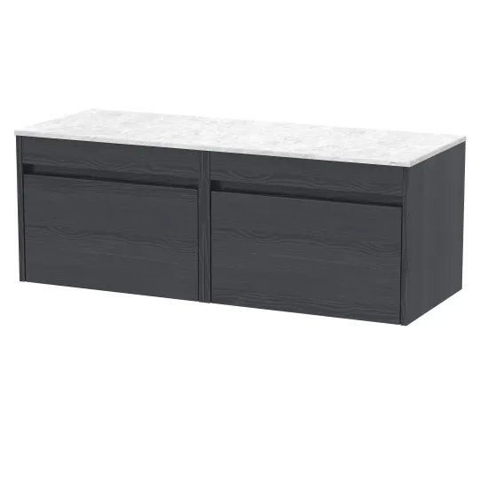 Loftwood 1200mm Wall Hung 2 Drawer Unit and Marble Worktop - Graphite Grey Woodgrain